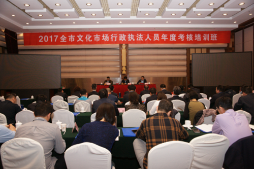 为深入推进文化市场综合执法改革,进一步加强文化综合执法规范化建设,4月17日至21日,北京市文化执法总队举办2017年度全市文化市场行政执法人员业务考核培训。全国“扫黄打非”办公室、国家新闻出版广电总局、国家版权局、市人民检察院、市政府法制办等有关部门领导应邀授课。北京市区两级文化综合执法人员400余人参加培训。