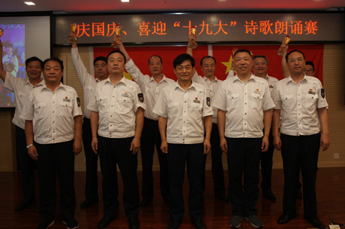 总队举行“庆国庆喜迎十九大”诗歌朗诵比赛,是总队党组推进“两学一做” 学习教育常态化制度化的重要举措,旨在通过朗诵比赛,隆重庆祝中华人民共和国成立68周年,激发党员干部的爱国主义情操,激励党员干部振奋精神、鼓足干劲、再接再厉,切实做到守土有责、守土负责、守土尽责。