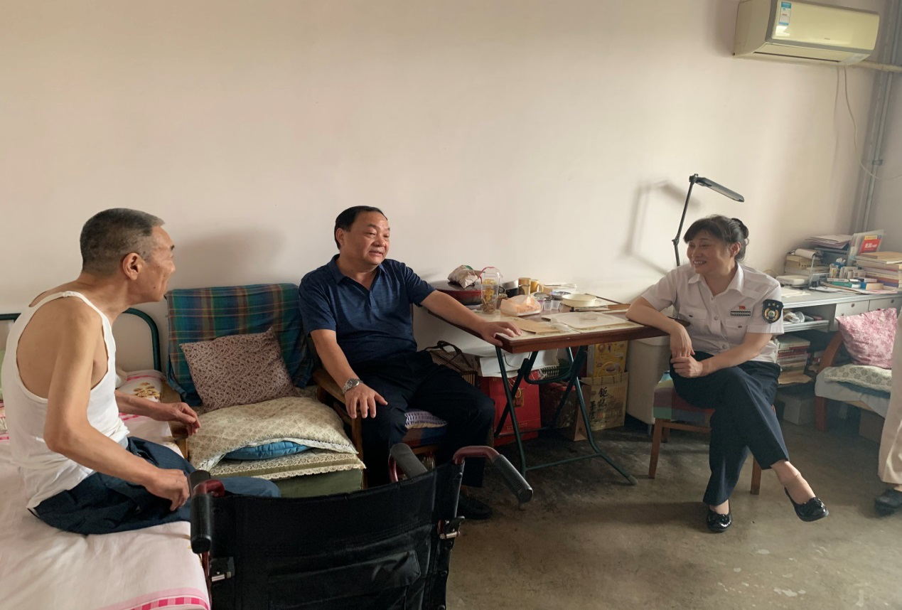 在老党员周秉华同志家中,王宁之同志感谢他为总队的发展做出的贡献,认真询问了他的身体状况和家庭状况,详细了解他生活中的实际需求;刘铁京同志将慰问品和慰问金送到他的手中,希望他在遇到困难时,要随时向党组织反映,组织会尽最大的努力帮助解决,并祝福他身体健康、阖家幸福。