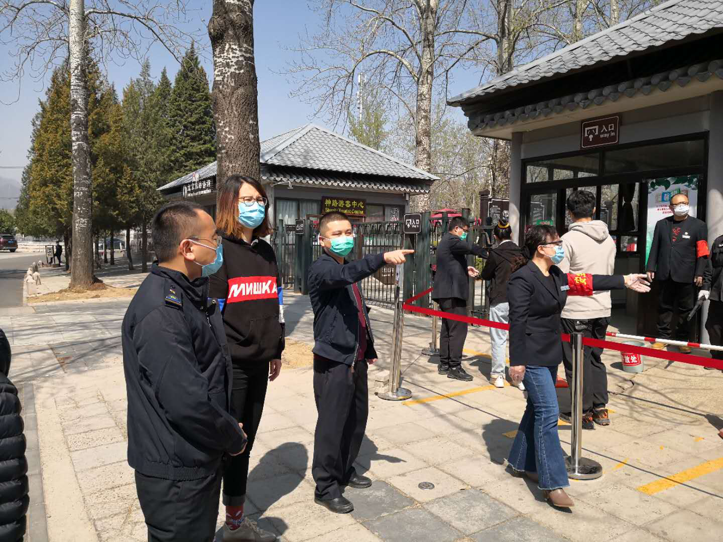 期间,区文化市场综合执法大队每日深入明十三陵神路景区、居庸关长城景区以及其他文化旅游经营场所进行排查,督导检查景区的疫情防控相关工作落实情况、旅游市场秩序运行情况。神路、居庸关长城景区于4月4日起对外开放,目前实行分散式游览,暂不接待旅游团队。两个景区均在入口安排工作人员为游客进行体温检测,在景区入口处及显著位置悬挂疫情防控宣传标语,安排工作人员引导督促游客全程佩戴口罩、避免人群聚集,保证景区内游览秩序及疫情防控工作有序进行。为了统筹推进各项工作,十三陵特区办事处还在节前根据实际情况制定了《关于新冠肺炎期间居庸关长城景区及神路景区有序开放的工作方案》,有序开展旅游接待,实现新冠肺炎零感染。