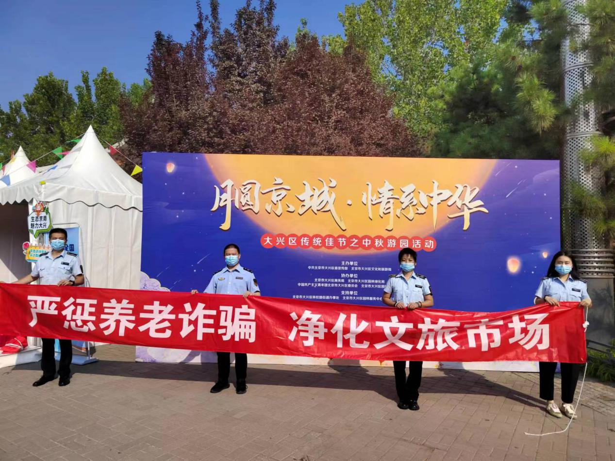 为进一步提高文旅市场养老诈骗专项行动的社会知晓率,9月10日,大兴区文化市场综合执法大队依托2022年“月圆京城 情系中华”大兴区传统佳节之中秋游园活动,在念坛公园开展养老诈骗宣传活动,全力做好打击整治文旅市场养老诈骗专项行动宣教工作。