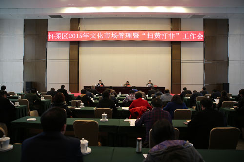 会议回顾总结了2014年工作,并对2015年工作进行整体部署。2014年,全区“扫黄打非”各成员单位深入开展工作,全面加强文化市场管理,在扫除淫秽色情等文化垃圾、打击侵权盗版行为、净化网络文化环境、有效遏制各种非法出版物及有害信息的传播等方面齐抓共管,有力地维护了辖区文化市场秩序健康稳定。2015年,以打击非法出版物为重点、以互联网为主战场、以查办案件为抓手,坚持境内查堵与境外反制、网下清查与网上净化、专项治理与日常监管、规范管理与教育引导相结合的方式,不断夯实基层基础,聚焦新兴领域,突破难点问题,坚决查处文化市场和互联网上存在的违法违规问题,提升“扫黄打非”工作法治化水平,切实维护怀柔区文化市场安全。