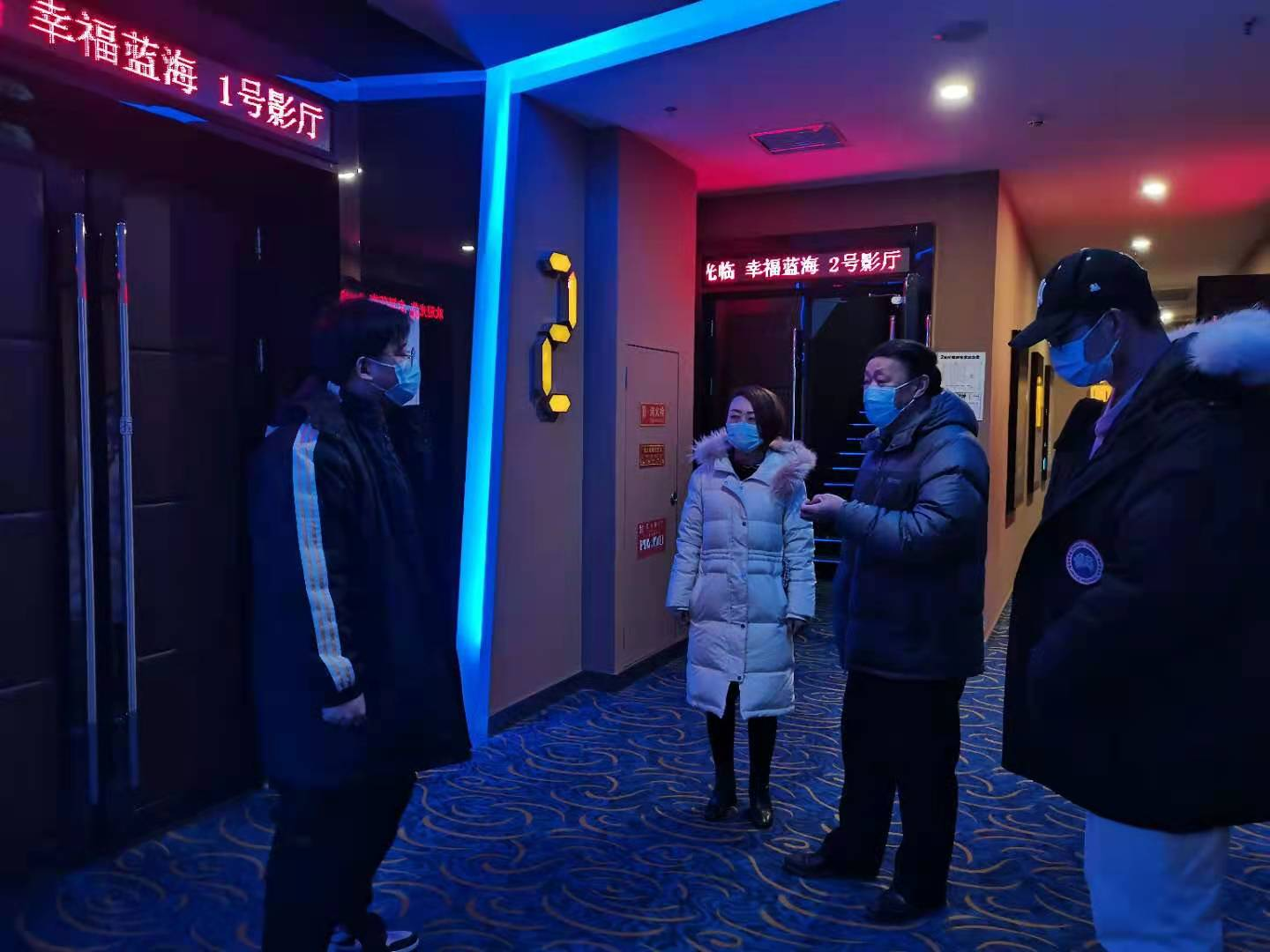1月26日,按照市、区疫情防控工作相关要求,门头沟区文化市场综合执法大队对永定镇幸福蓝海影城、博纳汇鑫影院开展疫情防控专项检查。