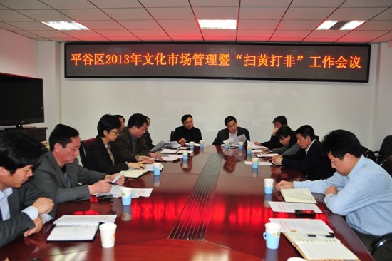 3月15日下午,平谷区召开2013年文化市场管理暨“扫黄打非”工作会议。区文化市场管理暨“扫黄打非”工作小组共14家单位主管领导参加会议。区委常委、宣传部长、区文化市场管理(“扫黄打非”)工作领导小组组长韦小玉出席会议并讲话。