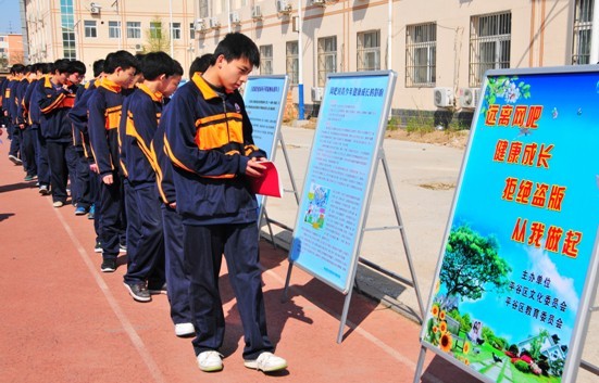 “4·26” 世界知识产权日之际,平谷区文委联合区教委在平谷中学、平谷三中、北师大平谷附属中学等6所初、高中学校,开展“远离网吧、健康成长;拒绝盗版、从我做起”的主题教育宣传活动。
