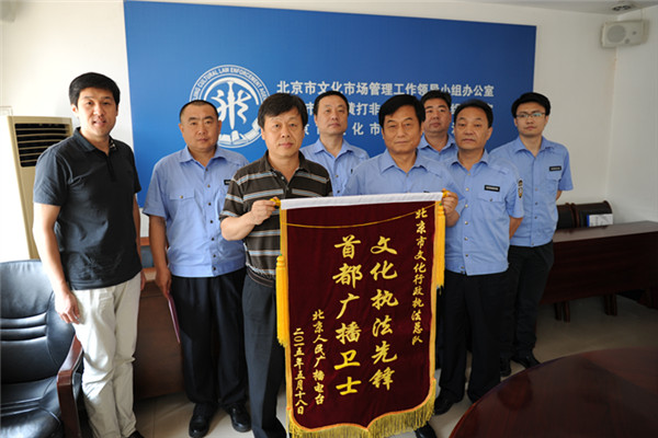 为此,北京人民广播电台向参与此项工作的同志致以最崇高的敬意和最真挚的感谢!并衷心期望北京市文化市场行政执法总队继续支持北京人民广播电台各项工作。共同为加强党的宣传战线建设和繁荣首都的文化市场而努力!
