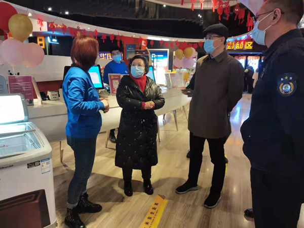 2月2日下午,北京市副市长王红赴朝阳区文化市场一线检查疫情防控落实情况,副秘书长张革,北京市文化市场综合执法总队党委书记、总队长曹鹏程等一同检查。