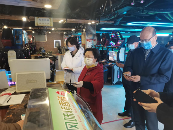 3月26日上午,北京市副市长王红“四不两直”赴文化市场一线检查疫情防控落实情况,北京市文化市场综合执法总队党委书记、总队长曹鹏程等一同检查。